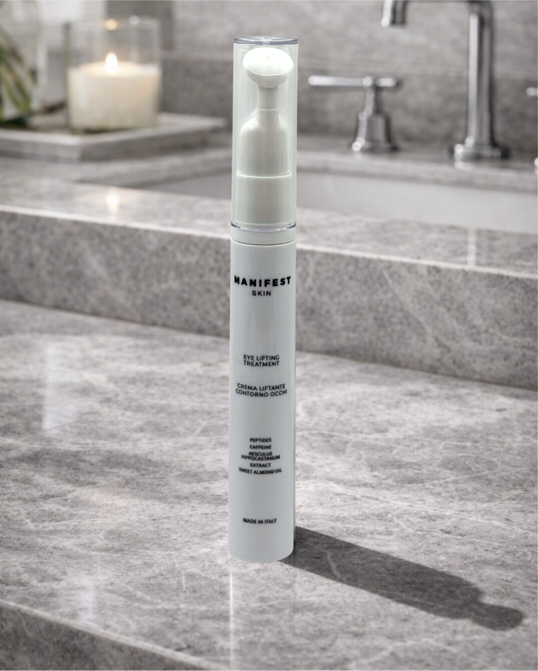 I Peptidi presenti nella formula contribuiscono a distendere la pelle e ridurre la visibilità delle micro-rughe, migliorando l'elasticità della zona contorno occhi. Il risultato è un aspetto più levigato, tonico e luminoso, per uno sguardo che appare più giovane e disteso.